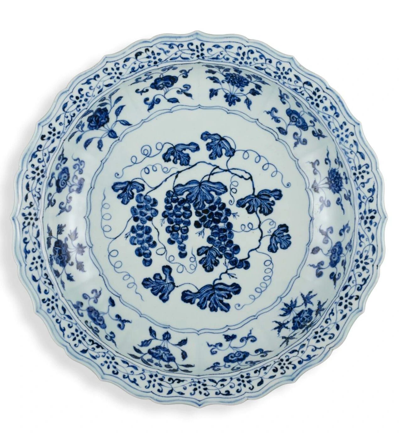 明永乐 青花葡萄纹折沿菱口盘(1843.1万)