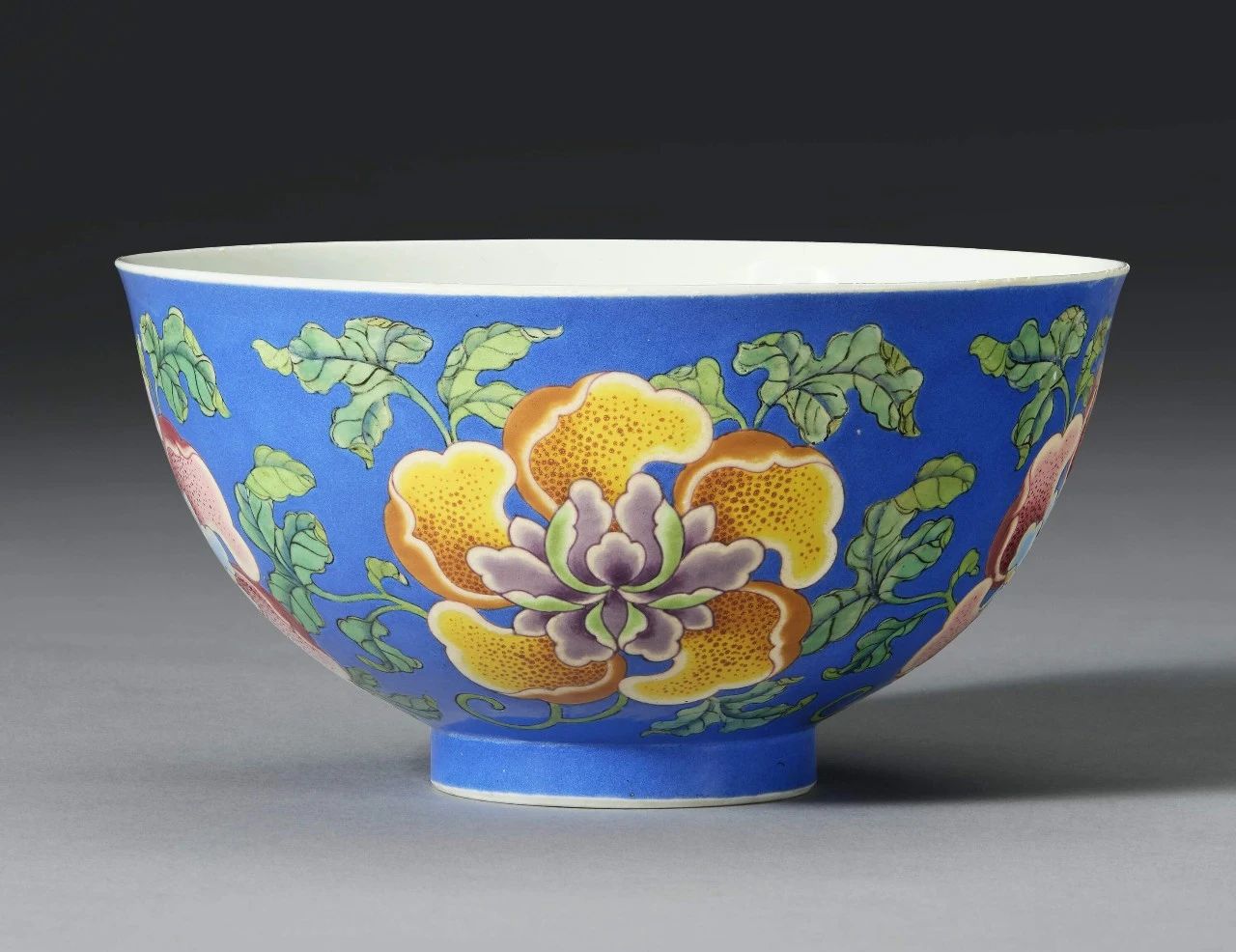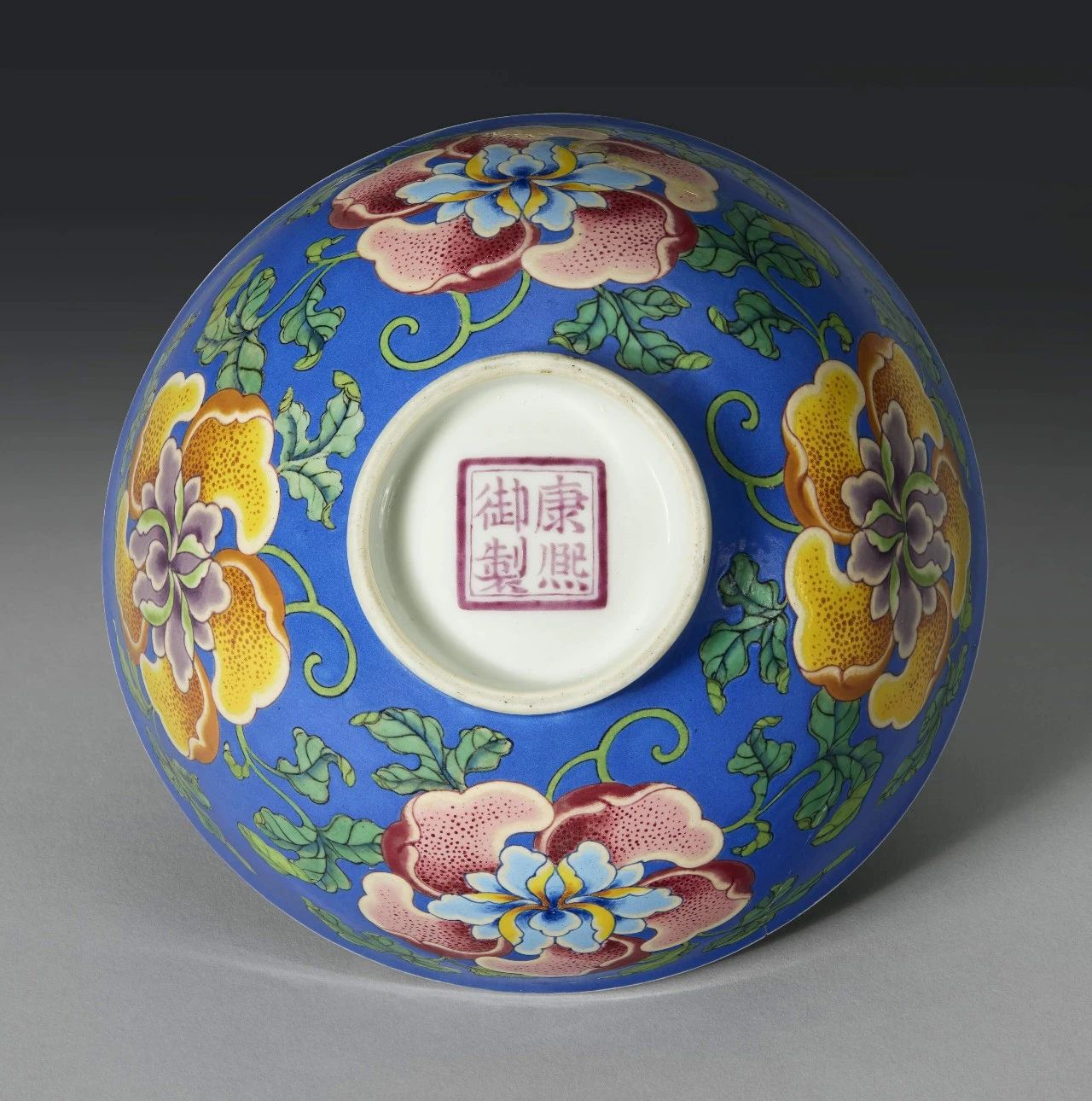 清康熙 珐瑯彩蓝地牡丹纹碗(6-8万美元)