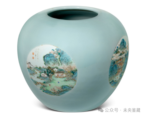 清乾隆 粉青釉開光粉彩山水人物詩文器成交价: HKD 456万