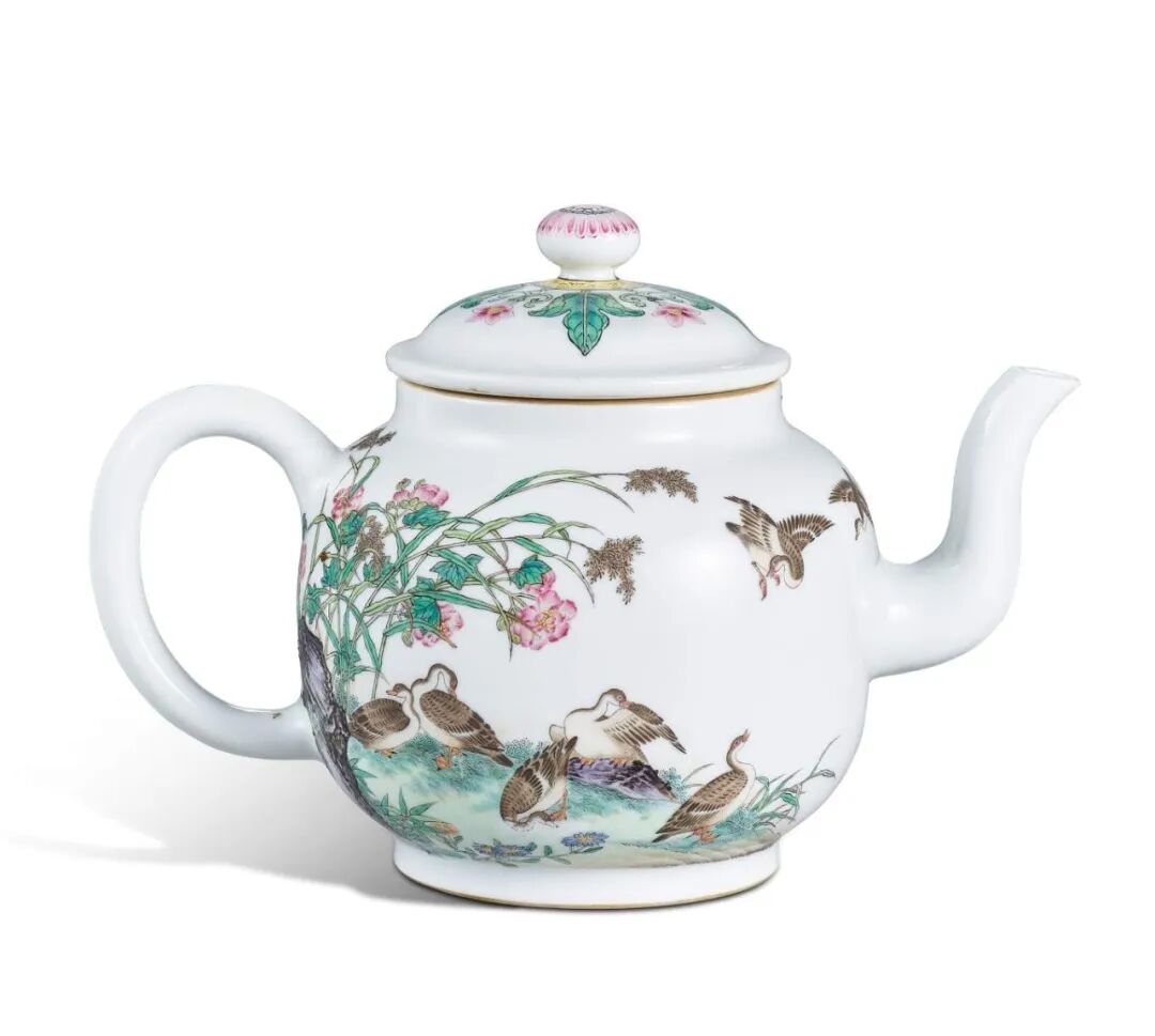 清乾隆 珐瑯彩「飞鸣宿食」图茶壶 (3000-8000万)