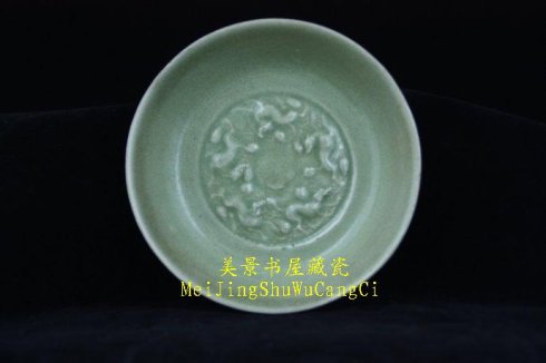 宋代临汝窑青绿釉凸印动物纹笔洗