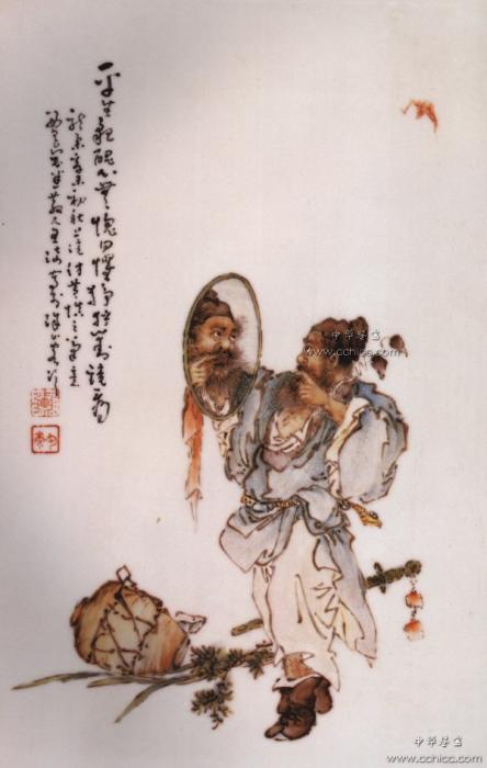 文章导读:描述: 平生貌丑心无愧 粉彩瓷板 关善明藏 平生貌丑心无愧,何惧狰狞对镜看。龙集辛未初秋上浣,仿黄慎之笔意。西昌匋迷散人王琦写于珠山客次。 印款:西昌王琦 匋斋