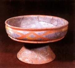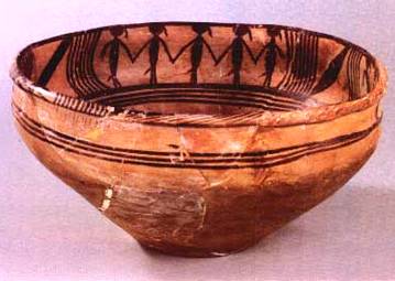 马家窑文化陶器(距今约5000年),1924年发现于甘肃临兆县马家窑而得名,有半坡、马长型;彩陶最为精美;图为马家窑彩陶钵