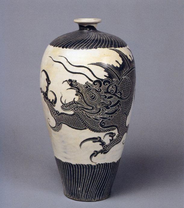宋代黑剔花龙(摩羯)纹梅瓶.