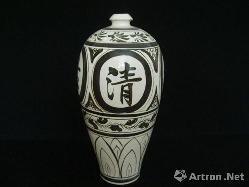 北宋磁州窑白地黑花清沽美酒梅瓶