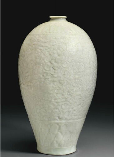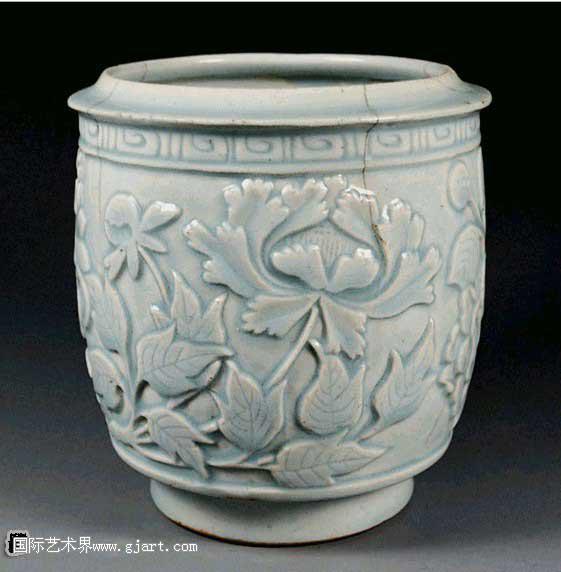 三、装饰:北宋早期多为无纹饰,以器型的规整和玉一般的釉色取胜。中期以后,以刻花为主,兼有印花、浅浮雕、镂空、堆塑等。晚期至南宋,印花工艺日趋流行。刻花为“半刀泥”,常见纹饰有婴戏、人物故事、龙、凤、麒麟、鱼、牡丹、荷莲、菊花、梅花、竹、石榴、鼓钉、水波、云气纹等。