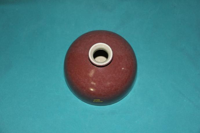 清康熙 豇豆红太白尊(俯视),口沿和器内施白釉。