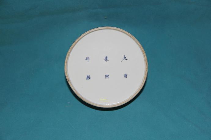底圈足,白釉青花楷书款“大清康熙年制”。