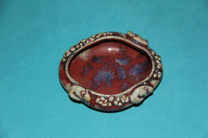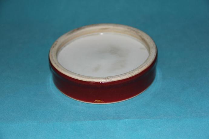 郎窑红圆砚(俯视),砚内无釉,抚之细润柔滑。