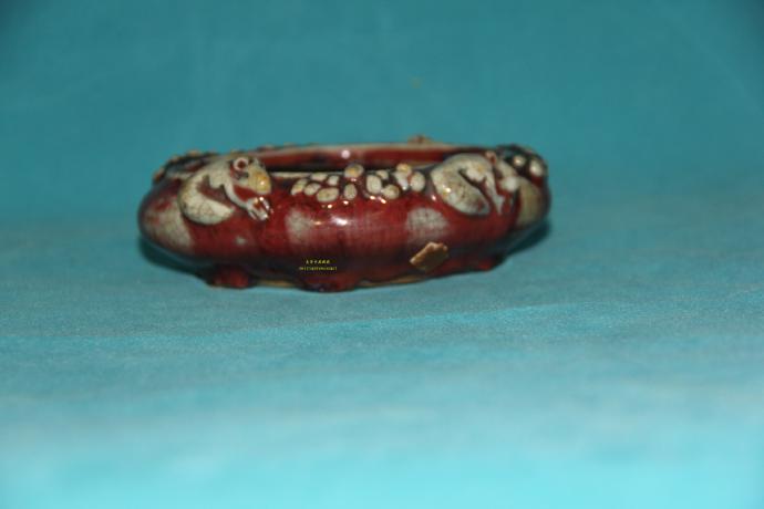 清雍正钧红浮雕老鼠爱大米海棠式笔洗平底