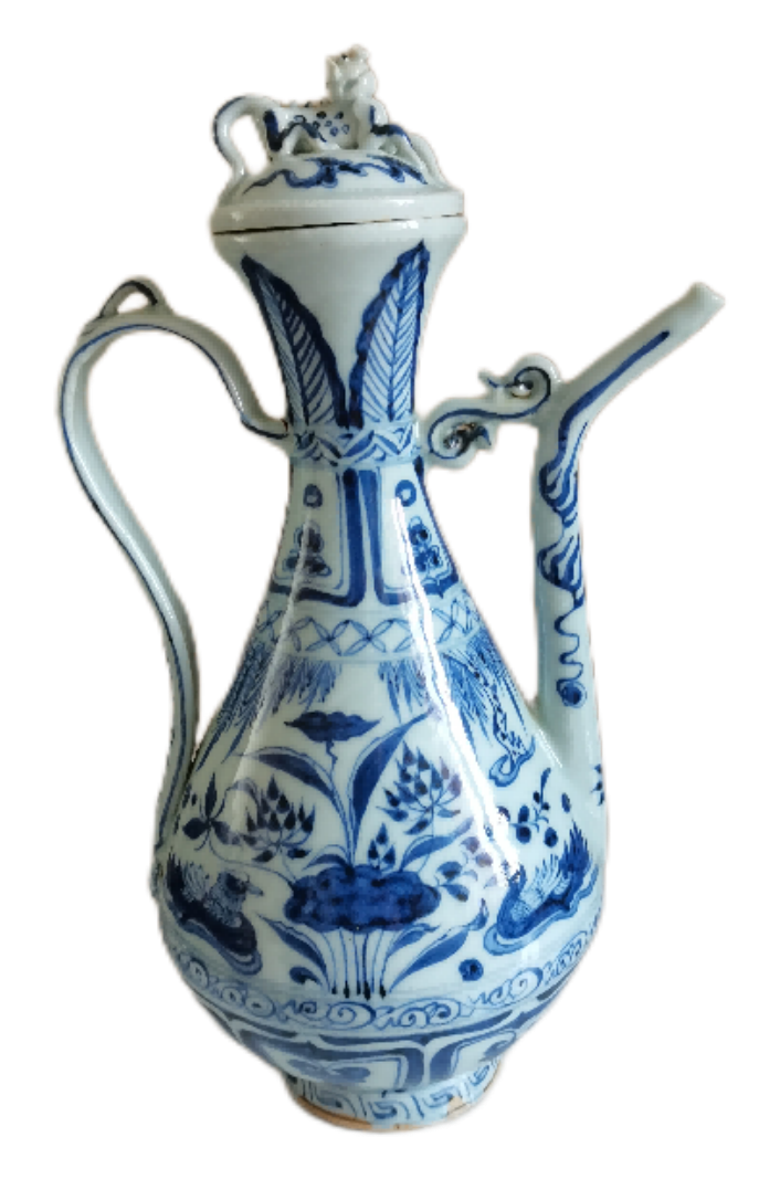 此类执壶多属御用或贵族专享,器型与纹饰的完美结合使其成为“至正型”元青花的代表。