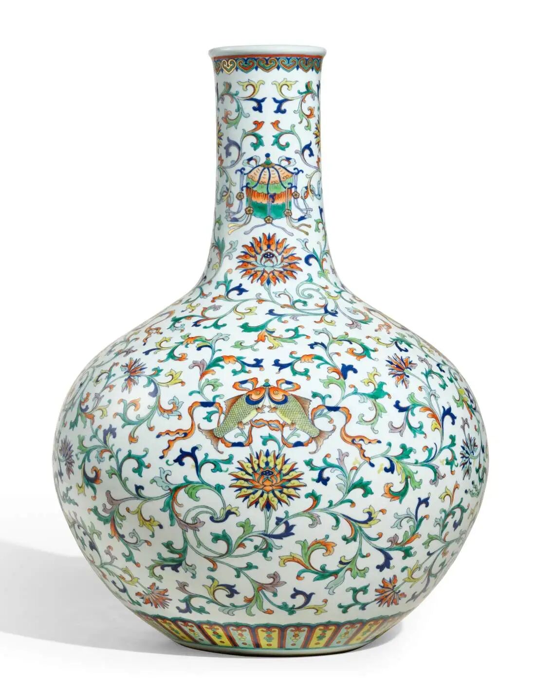 清乾隆 鬪彩加粉彩描金缠枝莲八吉祥天球瓶(3392.5万)