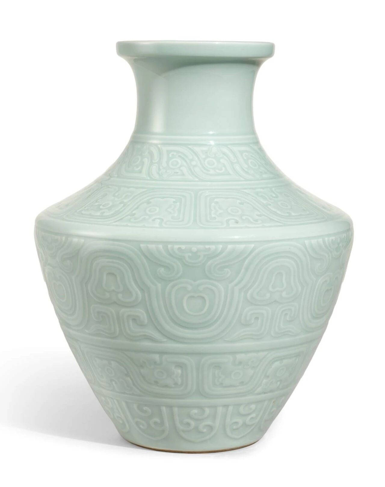 清乾隆 粉青釉仿古兽面波曲纹盘口尊(1684.5万)