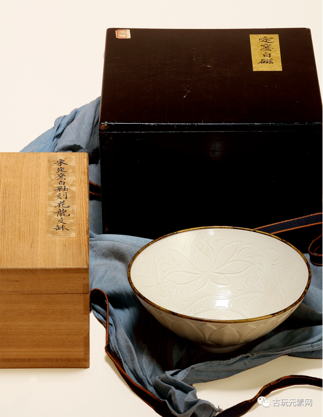|明 定窑白釉刻龙纹花卉外莲瓣|