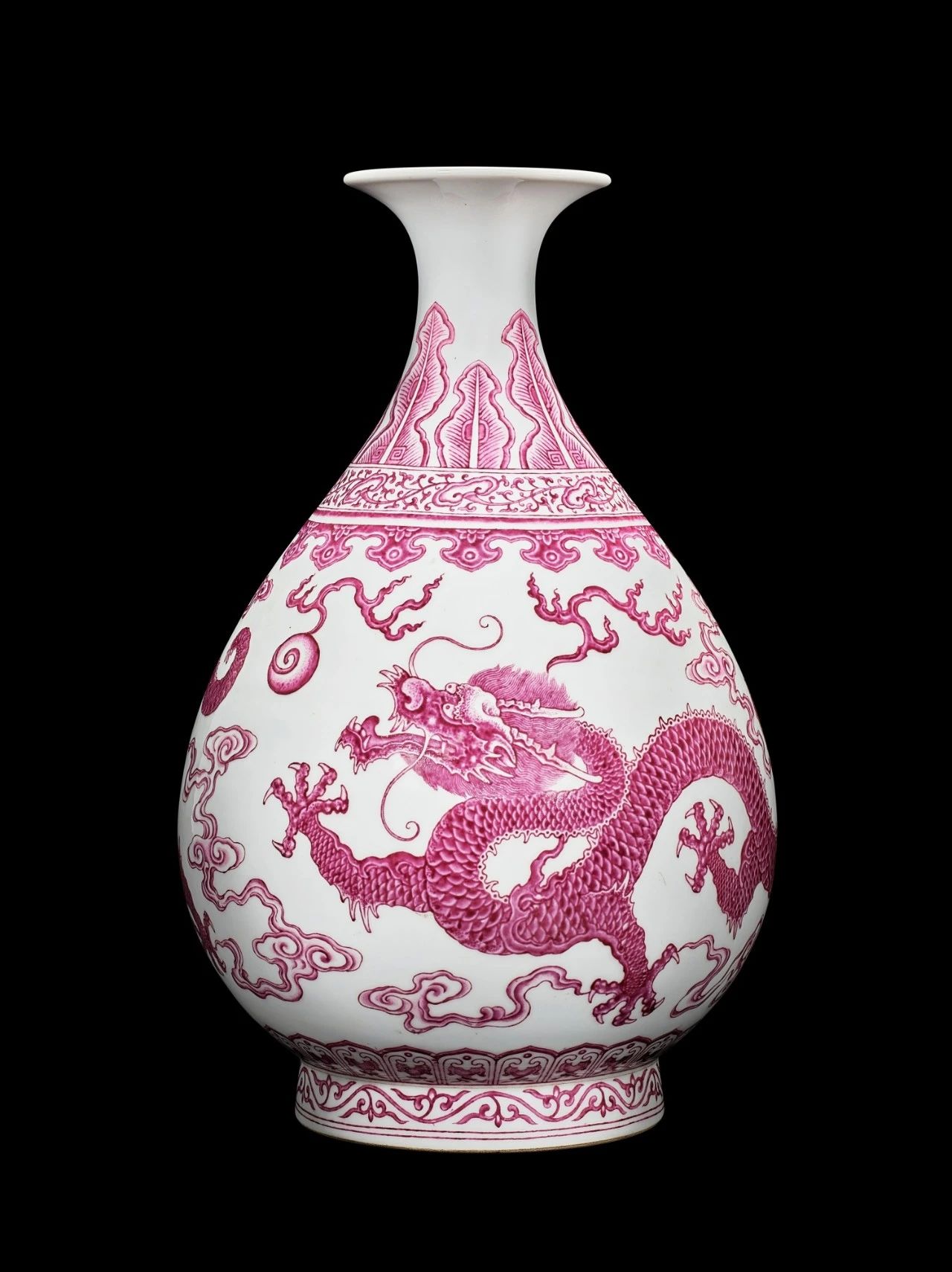 清雍正 御制胭脂红珐瑯彩逐珠云龙纹玉壶春瓶6034港元成交