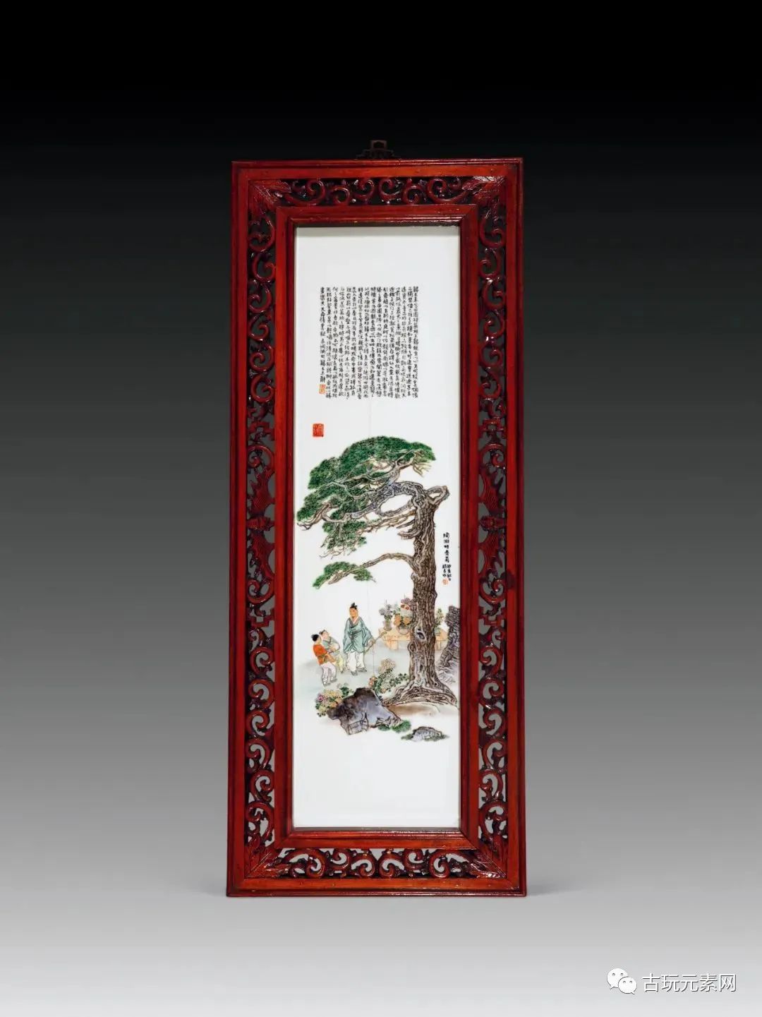 80年代 王锡良 粉彩 《陶渊明爱菊》瓷板