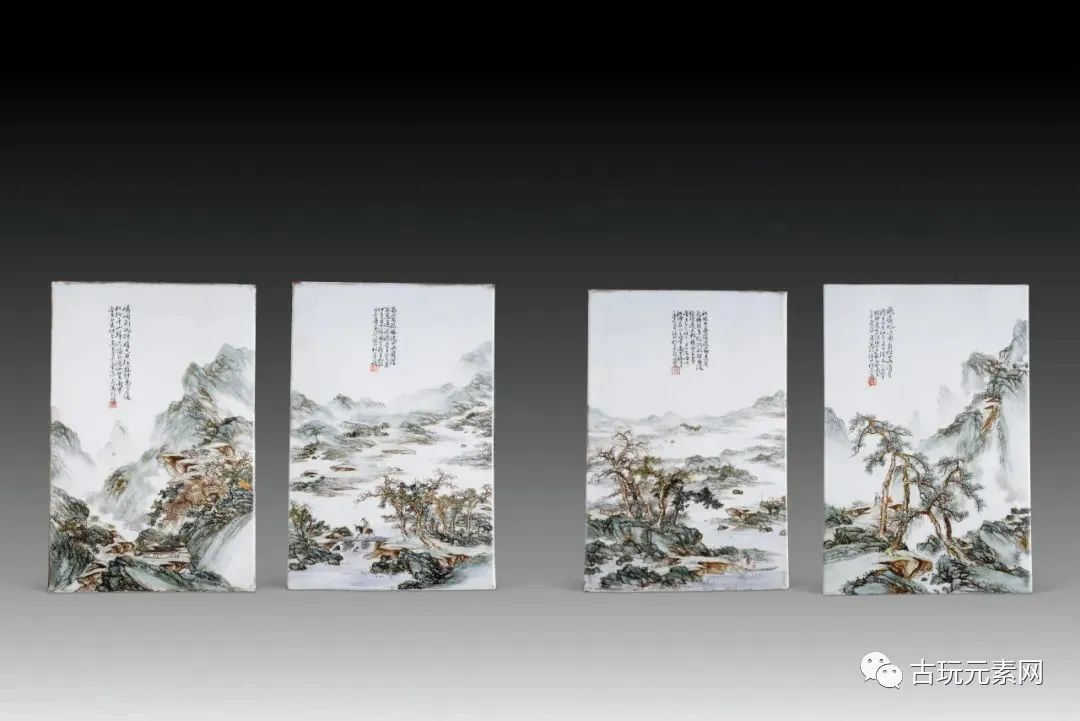 民国 涂菊清 粉彩 山水瓷板一套4块22万落槌