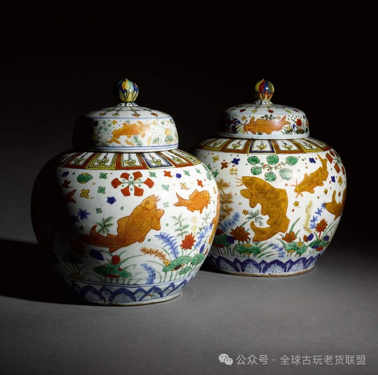 伦敦苏富比最新成交记录 明嘉靖 五彩鱼藻纹盖罐一对(963万英镑)