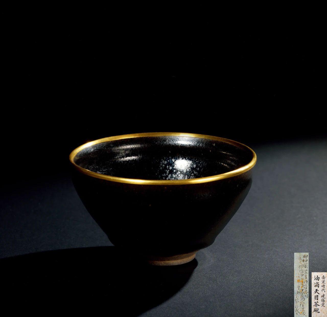本盌所贴木叶,轮廓清𥇦,脉络细致,与黑釉对比鲜明,属江西吉州窰最受推崇之品。据毛瑞教授研究,瓷匠或将树叶贴于盌上,再浸以釉药,窰烧时,树叶所带自然物质与釉药产生化学反应,树叶因而彷若半透。树叶边缘或于窰内烧焦卷曲,然而本盌叶纹贴服完整,尤其难得。