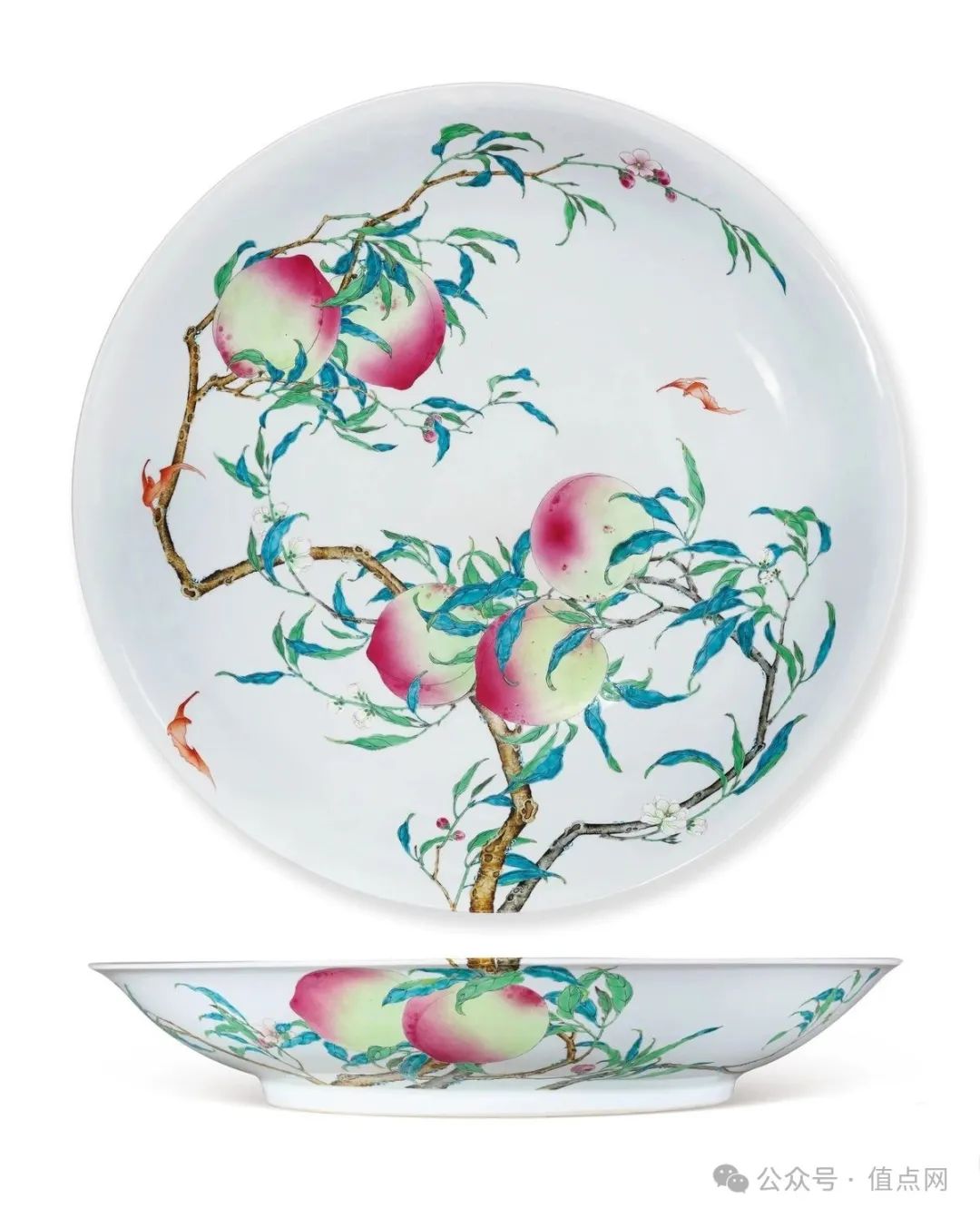 粉彩过枝「福寿双全」八桃五蝠大盘