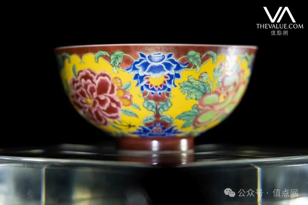 清康熙 珐琅彩胭脂紫地开光花卉纹碗