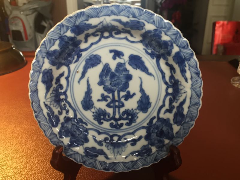 清康熙青花花卉纹葵口折沿盘,口径16厘米,由清华雅集会员葛凌于2015年12月香港古玩市场淘宝收藏