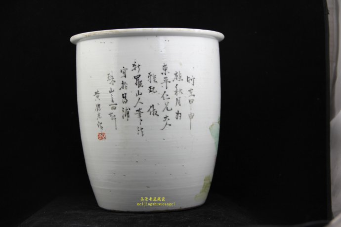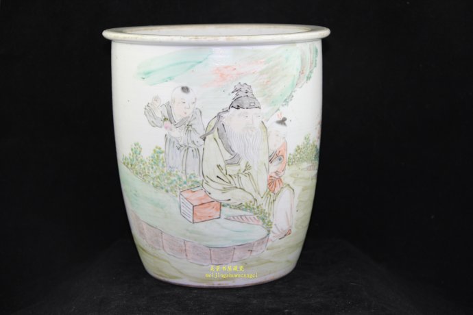 黄铭光清晚期浅绛彩绘名家,此1884年绘浅绛彩人物纹小画缸,高30厘米(清华雅集会员李欣收藏)