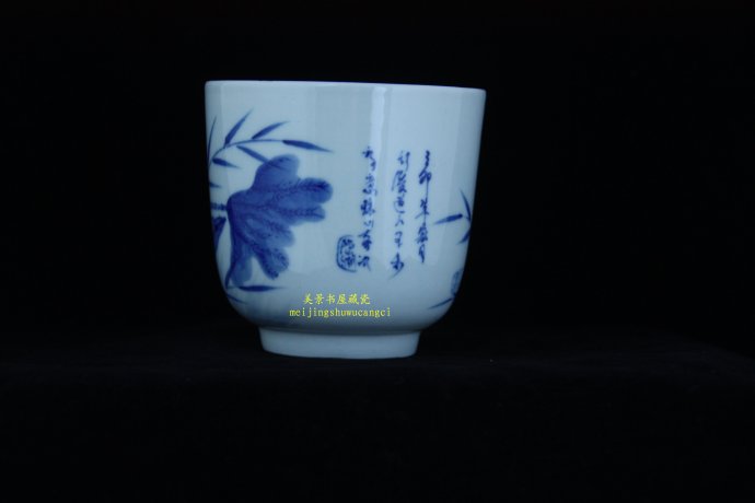 清华雅集会员李欣收藏的民国王步绘青花莲花鸟纹杯 ;“美景书屋”系李欣的书斋名