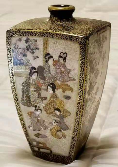 (本网讯 孙珉)2019年10月16日至21日,清华雅集举行日本国文化与淘宝之旅活动,有28位会员高高兴兴地参加。在大家古玩市场,翁广勇与张月明夫妇,在一个摊位看到一件十分漂亮的方花瓶,上有日本仕女、花草等纹饰,非常精美,鎏金富丽堂皇,底落款直书“锦光山”。十分喜欢,经讨价还价,最终如意收入囊中。