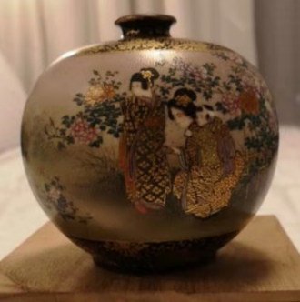 图为清华雅集会员苏永昂淘得日本萨摩烧彩绘名家仕女纹小口瓶