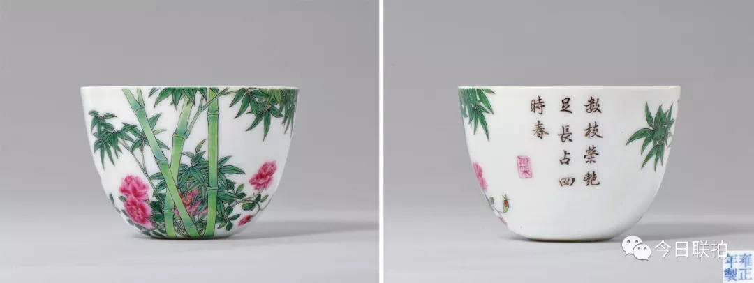 清雍正 珐琅彩月季绿竹诗意小杯成交价:RMB 22,425,000 《雍正年制》蓝料楷书款